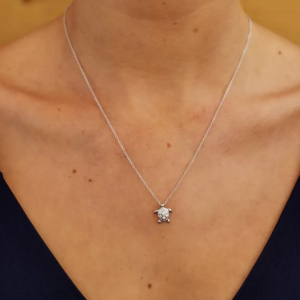 €240.00 Add to cartThis exquisite sterling silver turtle pendant is adorned with shimmering white Swarovski crystals and vibrant abalone. It hangs elegantly on an 18-inch (46 cm) sterling silver chain, combining natural beauty and sophisticated sparkle. Perfect for adding a touch of oceanic charm to any outfit.