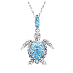 Sterling Silver Ocean Collection Swarovski Crystal Turtle Necklace