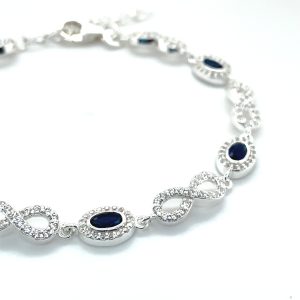 €85.00 Add to cartSterling silver bracelet with infinity motifs and blue stones, 7.5inches in length.