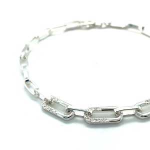 Sterling Silver Paperclip Link Bracelet with Zirconias