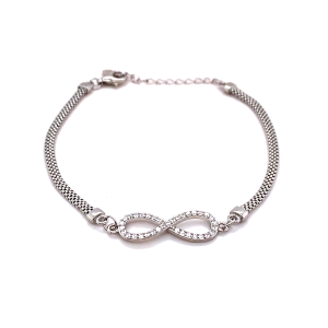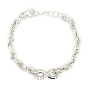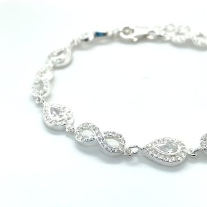 €135.00 Add to cartSterling silver infinity bracelet with pear shape cubic zirconias, 7.5 inches length.