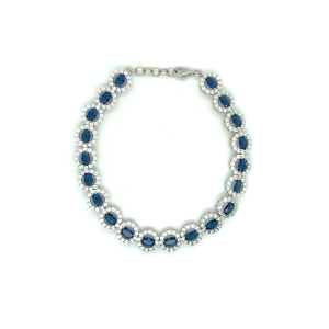 €250.00 Add to cartSterling silver bracelet with blue and white stone round shaped clusters, length approx 7.5 inches.