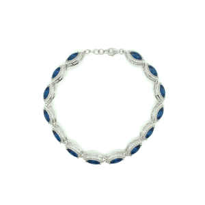 €220.00 Add to cartSterling silver bracelet with blue and white stone marquise clusters. Approx. 7.5 inches in length.