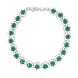 €250.00 Add to cartSterling silver round cluster bracelet with green and white stones, 7.5 inches in length.