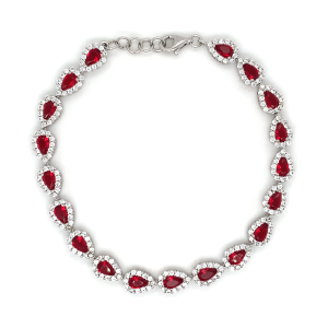 €215.00 Add to cartSterling silver pear shape cluster bracelet with red and white stones, 7.5 inches in length.