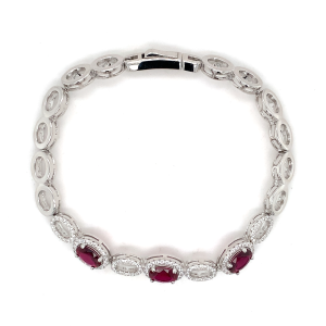 €220.00 Add to cartSterling silver cluster bracelet with red and white stones, 7.5 inches in length.