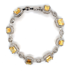 €180.00 Add to cartSterling silver bracelet with yellow and white cubic zirconia stones, 7.5 inches in length.