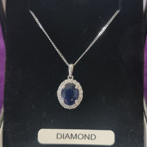 €1,900.00 Add to cart9ct White Gold, Diamond, Sapphire, Cluster Pendant