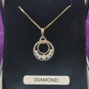 €945.00 Add to cartWhite gold diamond pendant and chain.