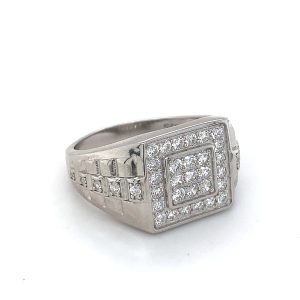 9ct gold signet ring with CZ stones.