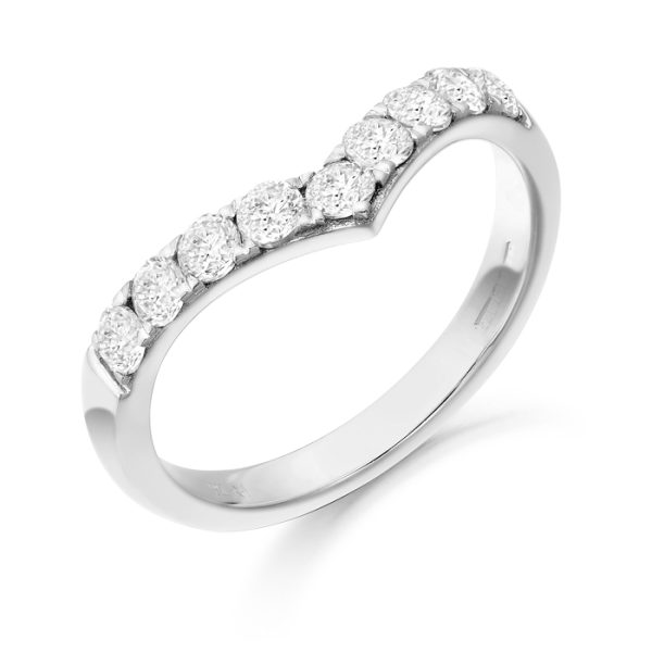 9ct White Gold CZ Wish Bone Wedding Ring. An elegant Micro Pave Stone setting with a brilliant flash of fire and sparkle. Hand crafted with beautiful detailing and Micro Pave stone setting embellish the beauty of this piece.