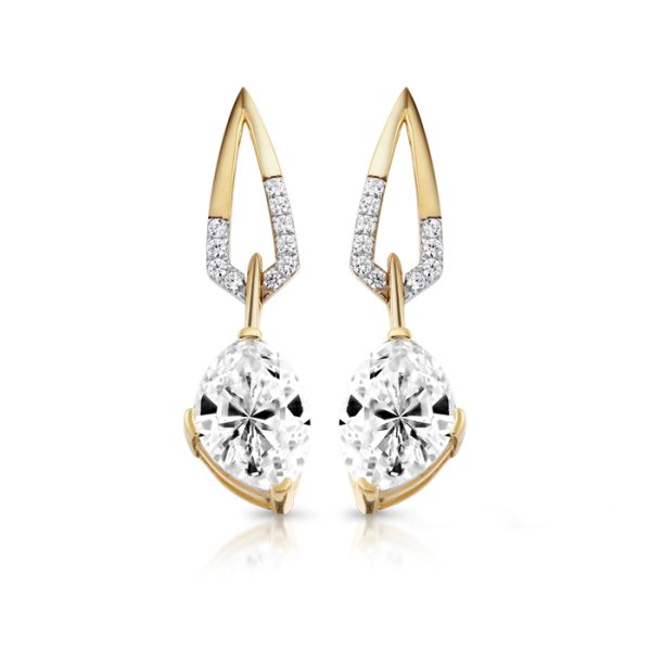 dazzling with elegance, these pretty Earrings are designed by DPL International and feature a drop design that’s filled with Micro–pavé dazzling CZ embellishment and holds the beautiful unsusual shape Cubic Zirconia stone which dangles as you move.