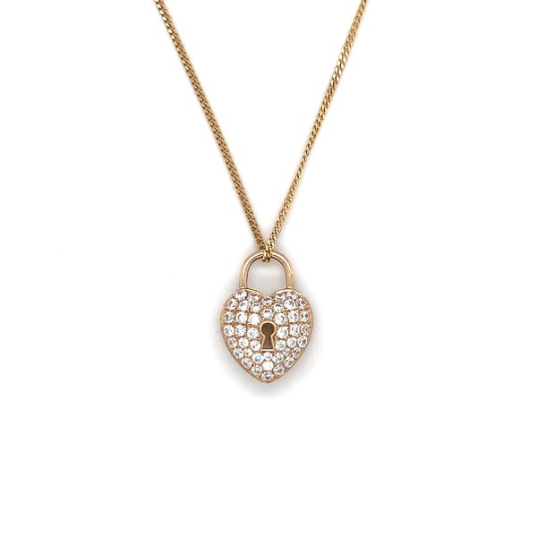 Add a touch of classic elegance to your fine jewellery collection with this beautiful Heart Pendant. A simple design with a bold visual impact, this unique CZ Key pendant has been crafted in 9ct Gold and set with Cubic Zirconia in Micro Pave stone setting and attention to details back and front.