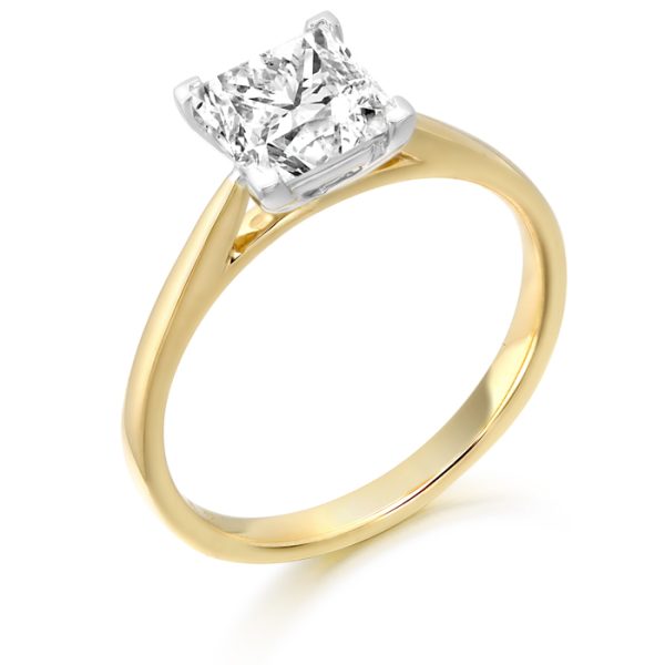 9ct Gold Princess Cut CZ Engagement Ring. A classic design that’s filled with timeless beauty and centre Princess Cut CZ stone set in Classic four Claw stone setting. This 9ct Gold CZ Ring is a wonderful way to declare your eternal love.