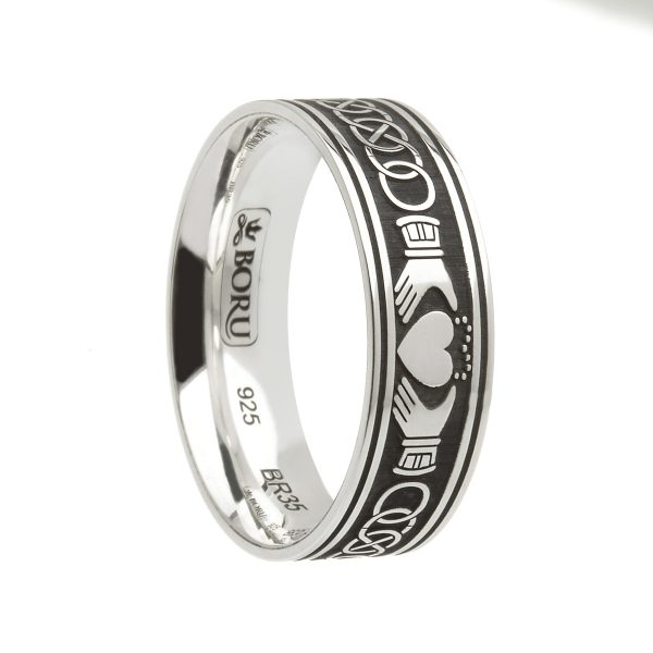 This pattern is deeply etched and oxidized around the band and the ring is a unisex ‘comfort fit’ band meaning the inside of the band is domed for a more comfortable wear.