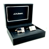 Sophisticated stainless steel cuff links feature intricate detailed edging and a smooth, polished center. A timeless accessory for personalized style and elegant occasions.
