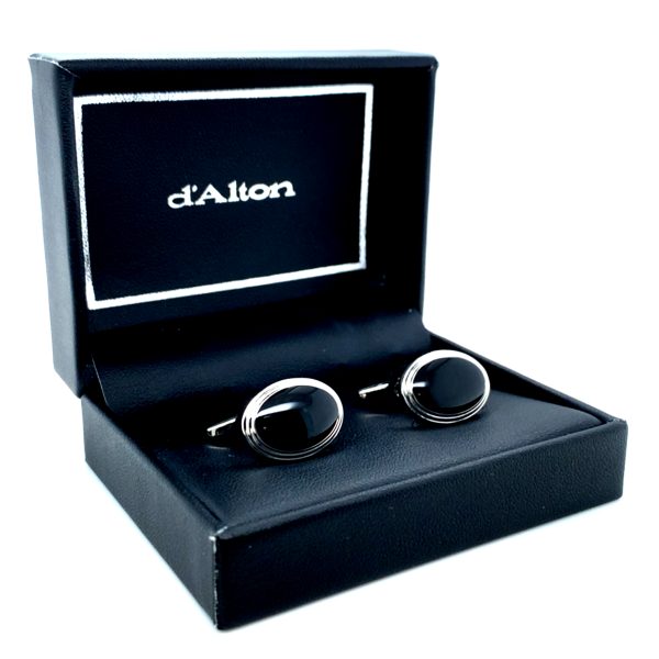 Sophisticated cuff links feature intricate detailed edging and a smooth, polished center. A timeless accessory for personalized style and elegant occasions.