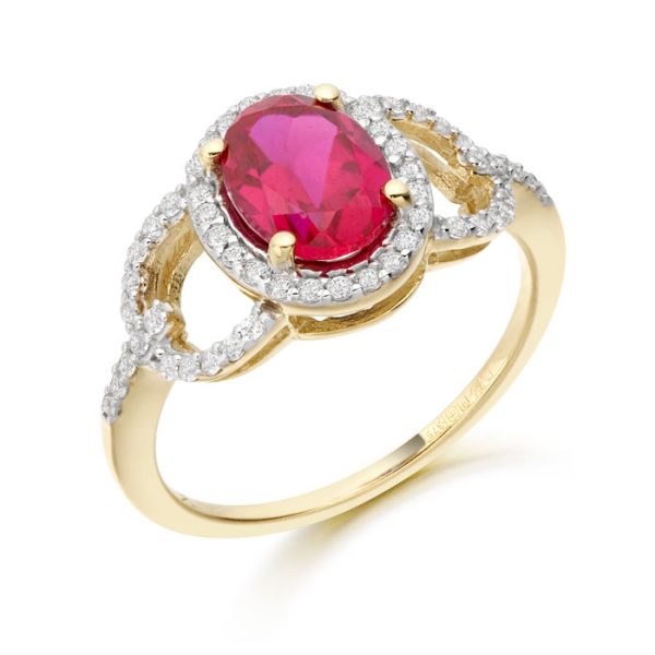CZ Ruby Ring, the estate style of the emerald Dress Ring adds elegance to its look. Dazzling accents add lovely detail to our Art Deco Engagement Ring. This stunning CZ Ring features an Oval Ruby Stone in the centre. It is surrounded sparkling Cubic Zirconia in a halo and down the band. This Dress Ring is in keeping with Traditional Engagement Ring Set with an oval-cut CZ Ruby in the centre and surrounded with brilliant cut CZ. The dazzling array of jewel creations is an invitation to create your own personal harmony.