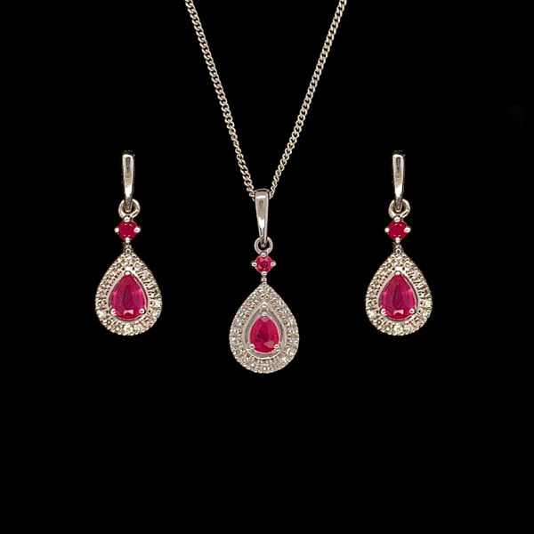 Diamond and Ruby Pendant And EarringsDiamond and Ruby Pendant And Earrings