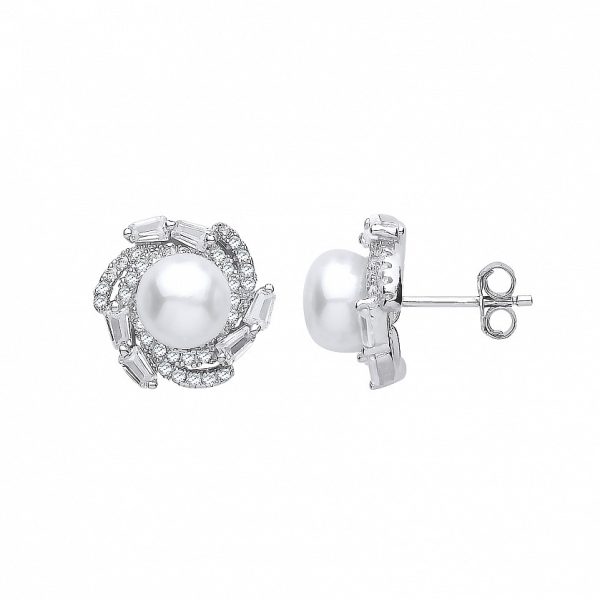 Silver CZ & Pearl Fancy Stud EarringsSilver CZ & Pearl Fancy Stud Earrings
