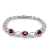 Sterling silver bracelet with red and white stone clusters, 7.5 inches in length.
