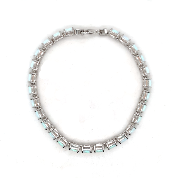 Sterling silver tennis style bracelet with opal stones, 7.5 inches in length.