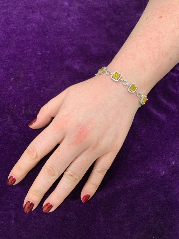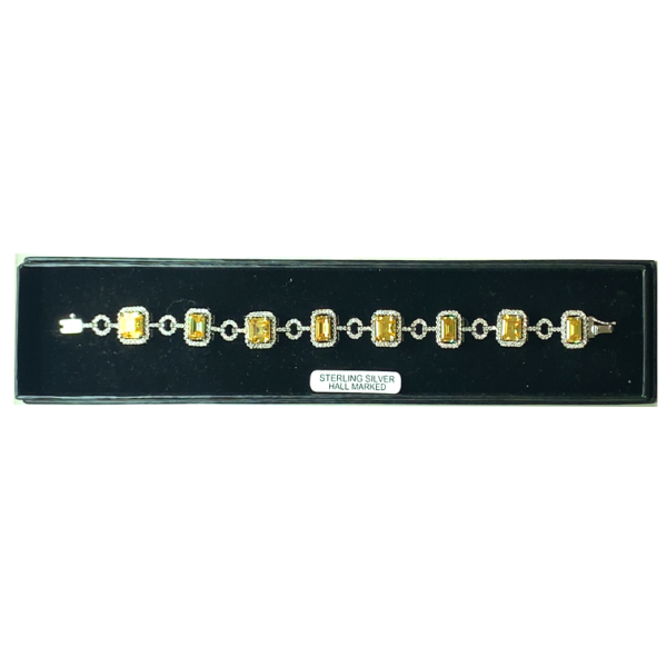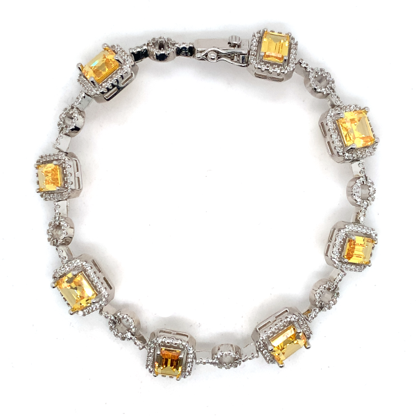 Sterling silver bracelet with yellow and white cubic zirconia stones, 7.5 inches in length.