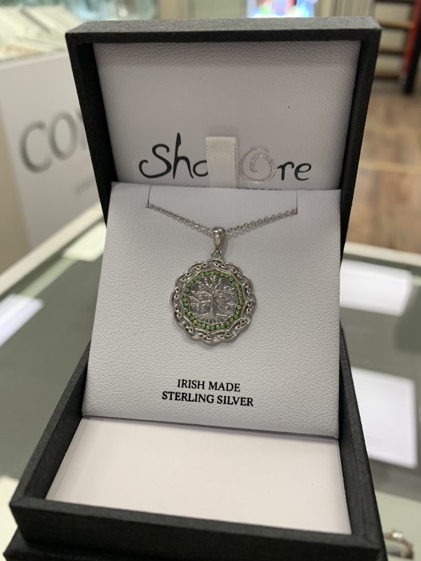 Sterling Silver Tree of Life Pendant with green peridot crystals.