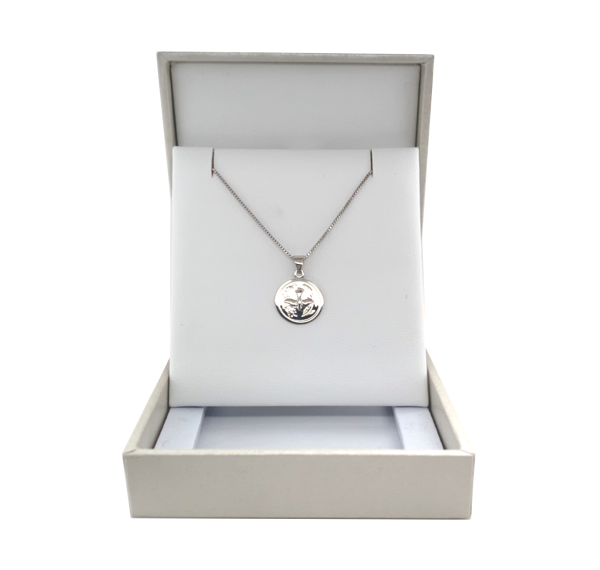 Sterling silver Confirmation medal, comes complete with 18 inch chain and box as seen in our sample image.